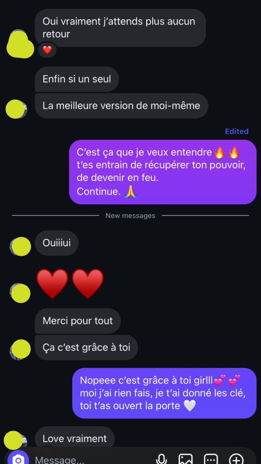 Mais surtout de revenir à toi. De redevenir cette femme libre, pleine, confiante que tu sens déjà en toi.