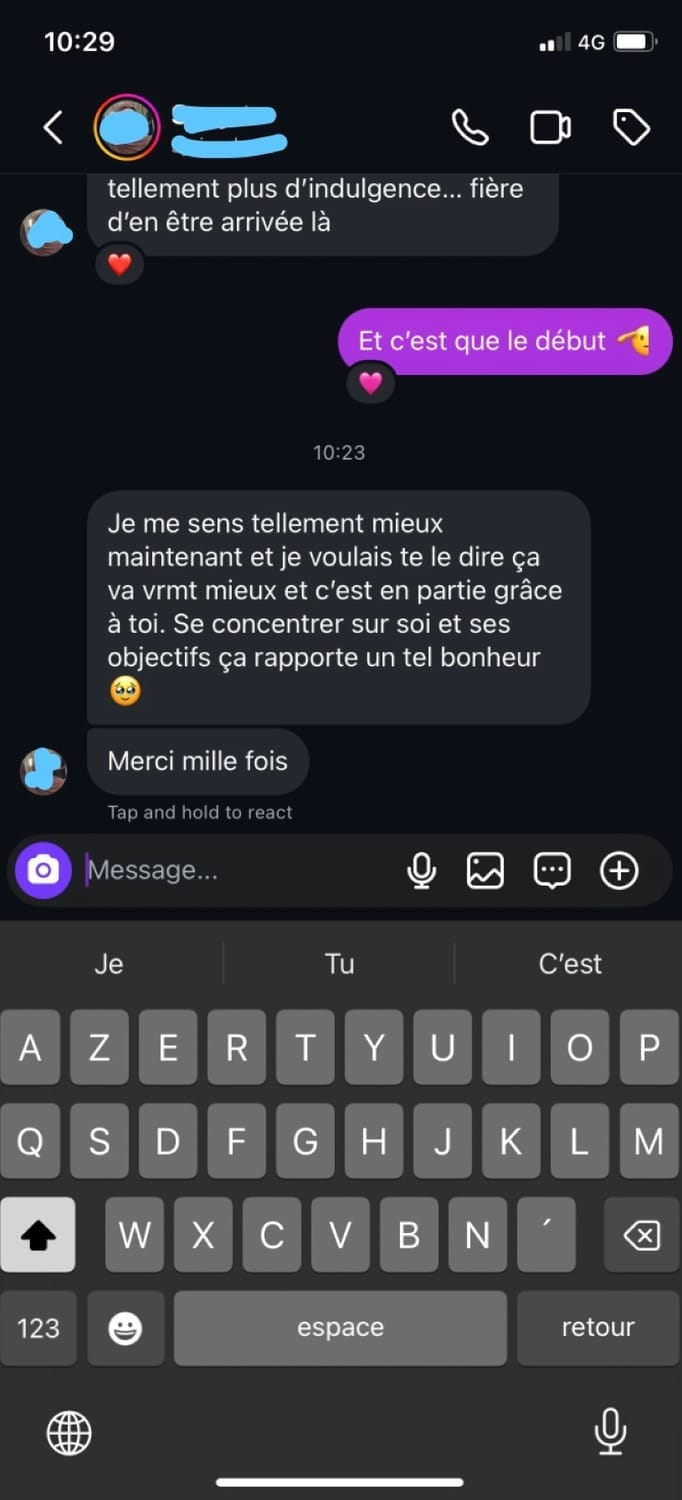 Un accompagnement bienveillant, comme si une coach était à tes côtés à chaque étape.